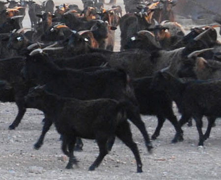 Among the herd may be found a dozen or so 'blue' goats. For those of you who have never seen one, they are indeed blue. More blue than grey.
