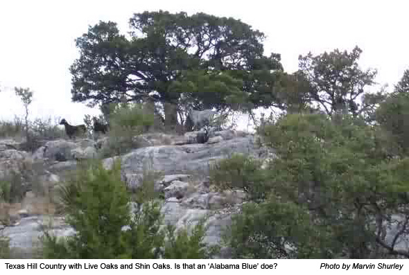 Bode’s goats were kept in Sonora, Terville, and at home in Harper. The terrain is hilly with limestone rock that would keep the goats?hooves in excellent condition naturally. Their forage included Shin Oak, Spanish Oak, and a lot of low, leafy brush. He did find that if the goats gorged on too many acorns, they would get sick from the toxins.